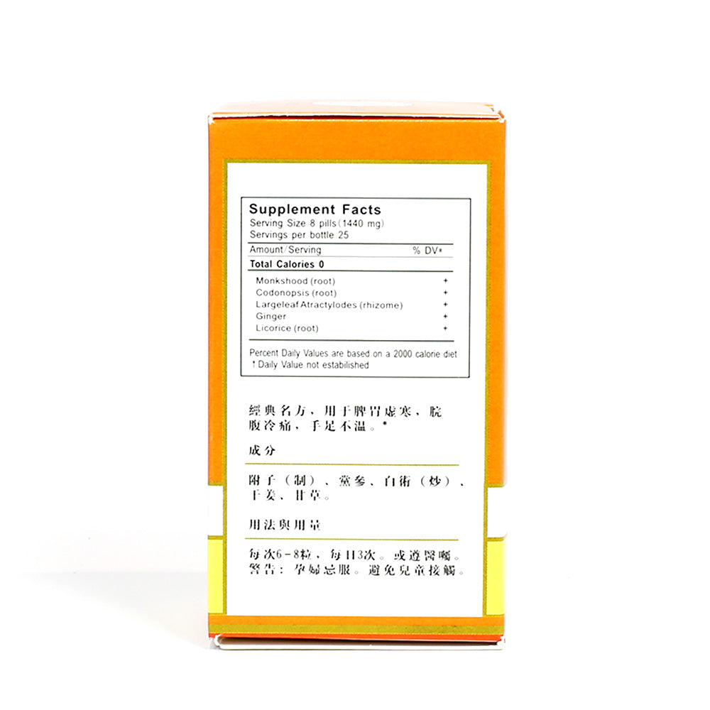 | Take 6 pills each time, 3 times daily. Or consult your herbalist. Do not use if pregnant. Keep out of reach of children. |