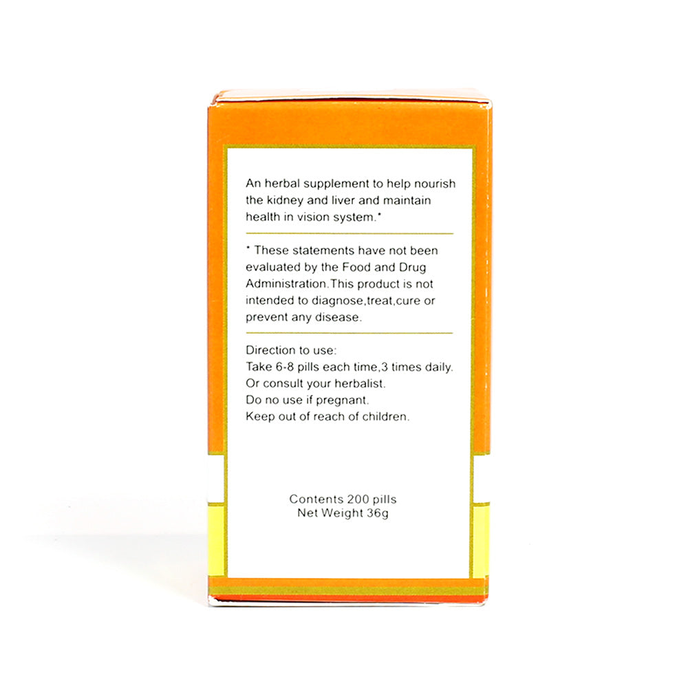 | Effect: | An herbal supplement to help nourish the kidney and liver and maintain health in vision system. |