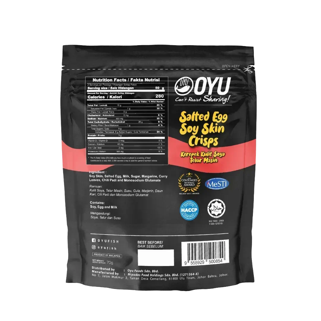 Ingredients: Soy Skin, Salted Egg, Milk, Sugar, Margarine, Curry Leaves, Chili Padi