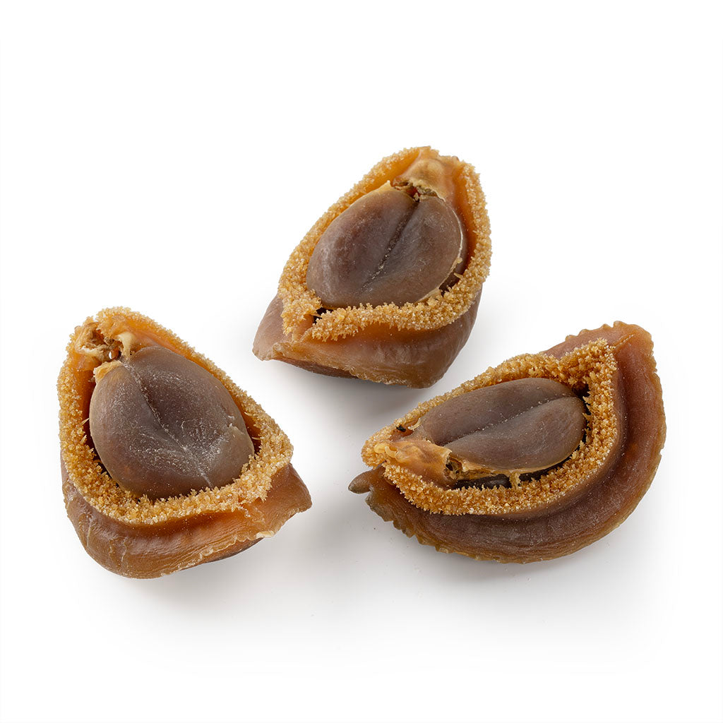 「南非鲍」顾名思义,产自南非,边缘毛刺细密明显。由于个头硕大、品质上乘,长年在国际市场上广受推崇。此款特级南非溏心鲍,严选当地优质鲍鱼,并以日本传统干鲍制作工艺为蓝本,经过精细加工,制成独具风味的极品干鲍。鲍身色泽新鲜油亮、肉质厚实紧致,足干而饱满,珍贵的“溏心”口感鲜嫩细腻。每磅约15~18头,味道鲜美浓郁,入口回甘,深受饕客喜爱。