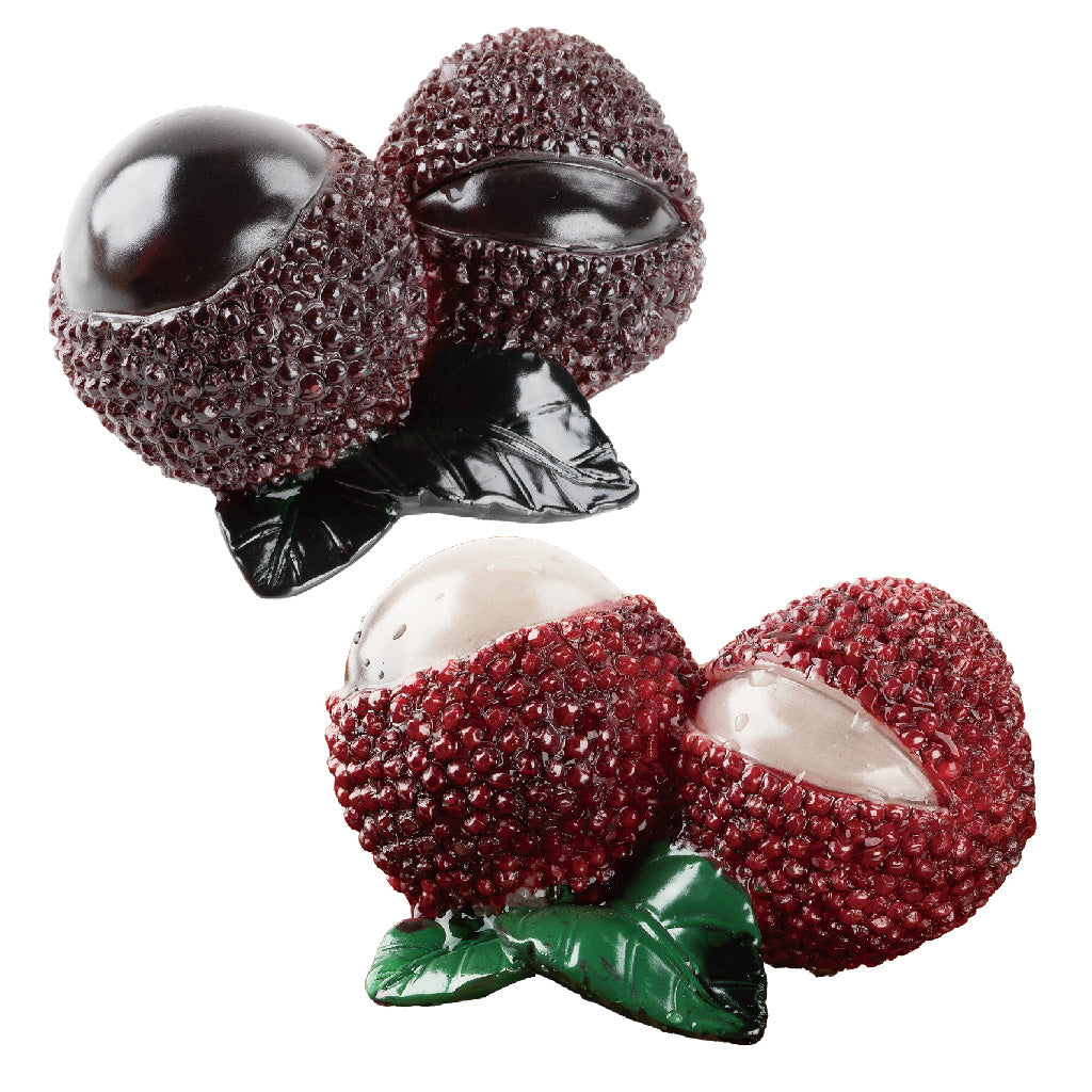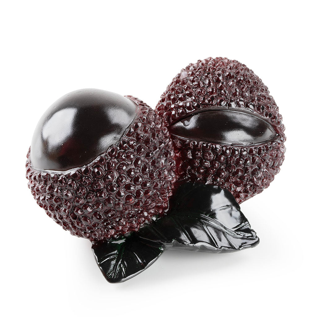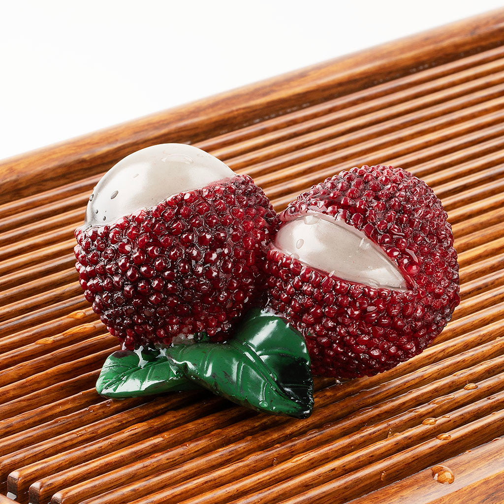 採用雙荔枝連枝造型設計,1:1還原真實荔枝的形態細節:果皮佈滿細密凸起顆粒,觸感逼真;葉片脈絡清晰,色澤自然;其中一顆半開的荔枝露出瑩潤果肉,形態靈動,無論是靜置茶盤還是淋水變色,都如真實荔枝般鮮活討喜,兼具觀賞性與趣味性。