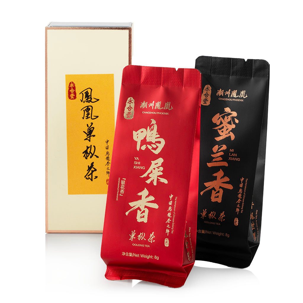 1. 核心產區原料:精選廣東潮州鳳凰山核心產區的高山老樅鮮葉,鴨屎香(銀花香)與蜜蘭香兩大經典香型組合,茶質飽滿,香氣物質豐富。