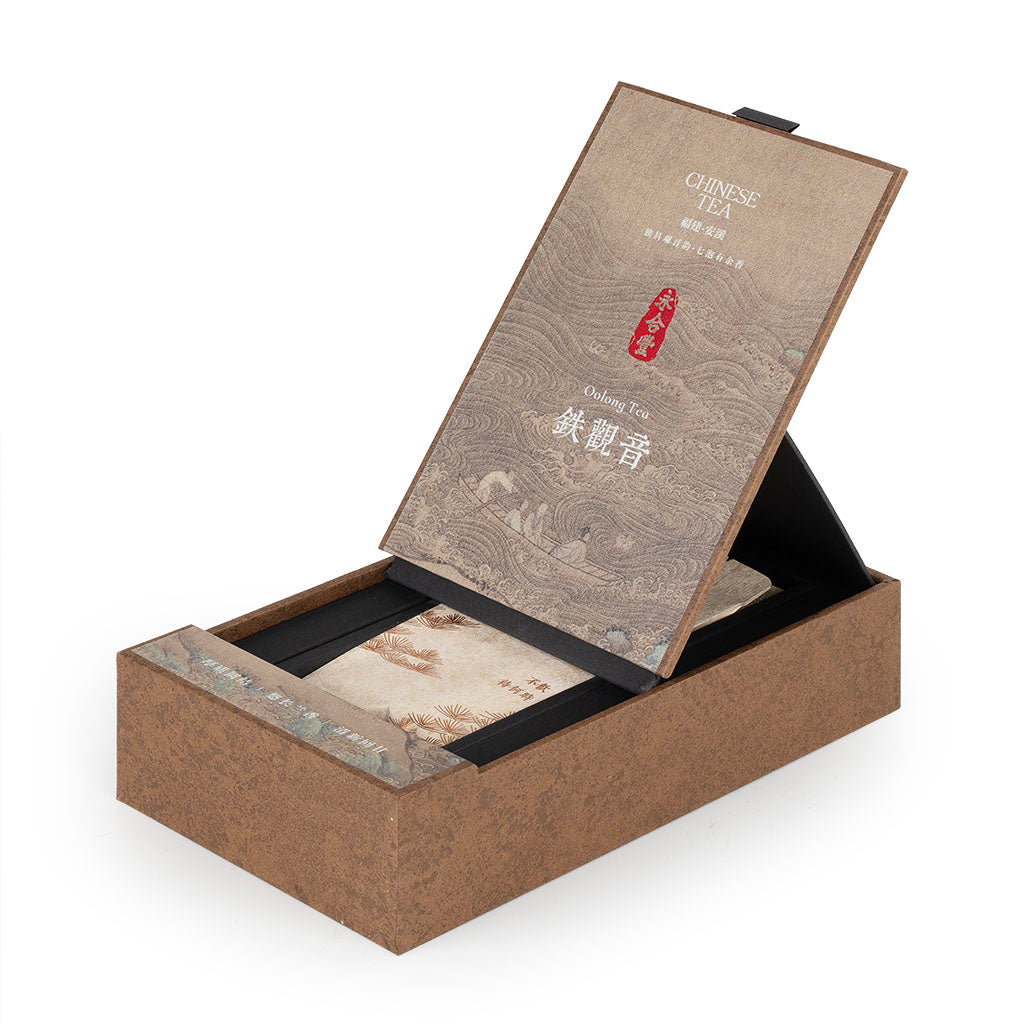 3. 國風質感包裝:棕褐肌理禮盒搭配山水紋與松枝元素設計,內嵌米白松紋獨立茶袋,兼具東方美學與鎖鮮實用性,是商務禮贈與私享品鑑的上佳之選。
